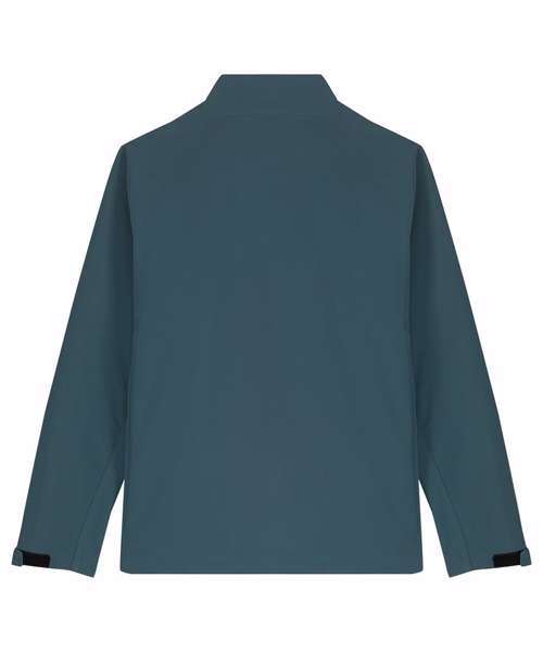 Men’s softshell jacket, medium fit with a high collar and set-in sleeve. Bottom hem with adjustable plastic stopper and elastic cord. Reverse nylon zip at centre front. Zipped outside welt pockets with reflective elastic puller. Fully bonded inside fleece layer. Side panels and stretch for better shape. Adjustable hook and loop sleeve opening. Inside seams finished with recycled binding. Water-repellent up to 10,000mm, breathability up to 3000G/M2/24hrs allowing perspiration to escape. Windproof. Bionic ECO DWR (durable, water-repellent) finish.