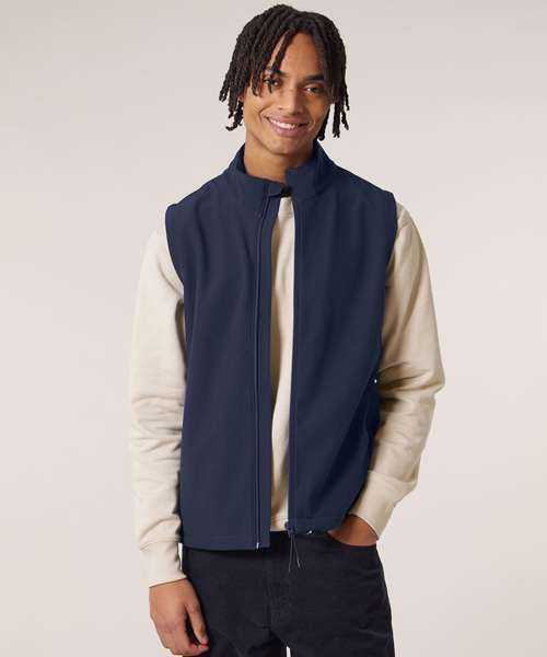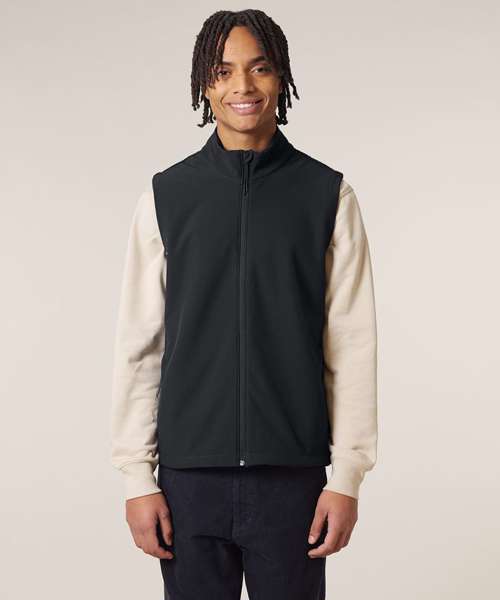 Premium men’s sleeveless softshell jacket. 315gsm stretch fabric with recycled TPU membrane and inside fleece layer. Water-repellent, breathable and windproof.