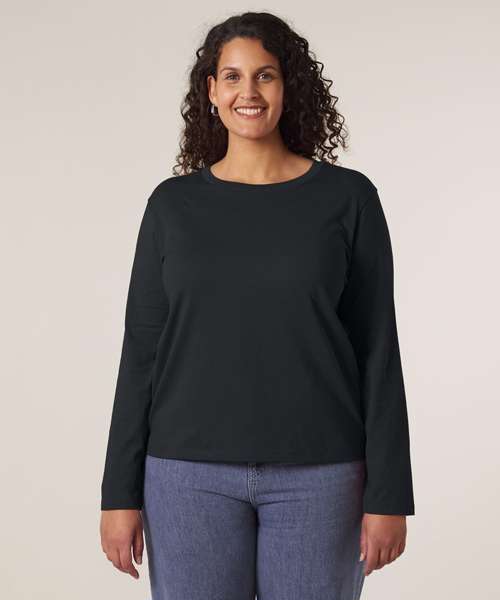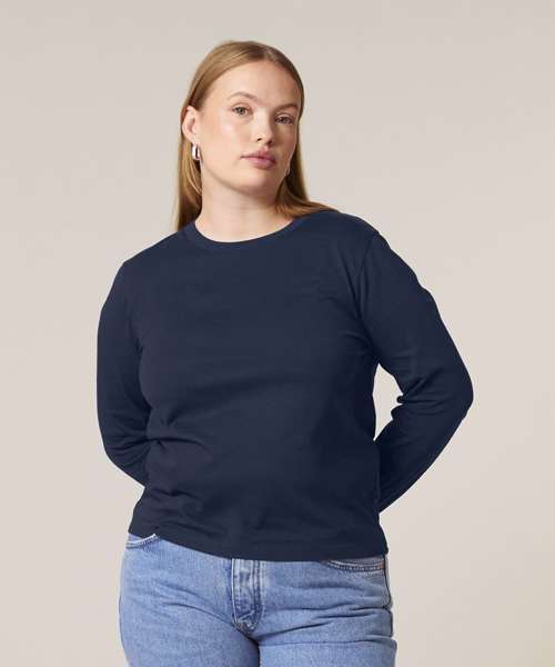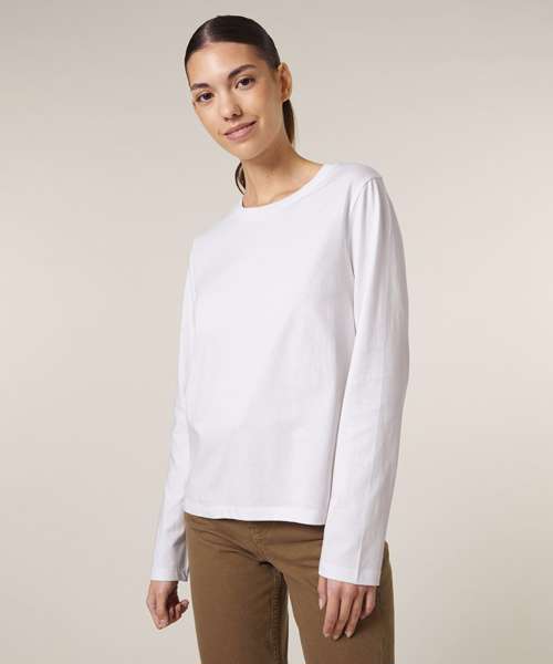 Premium women’s long-sleeve t-shirt in 100% organic cotton. Timeless style, medium fit, 180gsm. Excellent printability. Aligns with Creator 2.0 long sleeve.