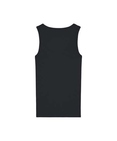 The Stella Ava fitted tank top for women. Sleeveless. 1x1 rib binding at collar and armhole. Overlock at back neck. Twin-needle topstitches at hem.