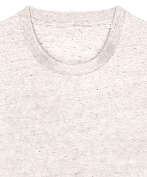 The iconic unisex t-shirt. Modern medium fit. Set-in sleeve. 1x1 rib at neck collar. Inside back neck tape in self-fabric. Twin-needle topstitch at sleeve cuff and hem.