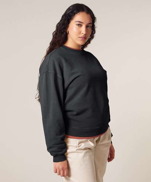 Premium, oversized, garment-dyed crew neck sweatshirt in 100% organic cotton, 350gsm. Streetwear-inspired fit and details. On-trend colours. Excellent printability.