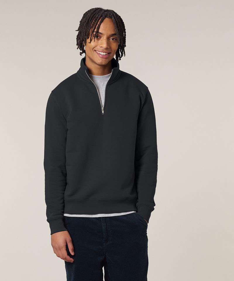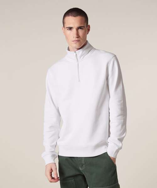 Premium, unisex, quarter-zip sweatshirt in 85% organic cotton and 15% recycled polyester. Medium fit, 280gsm. Ideal for corporatewear. Excellent printability.