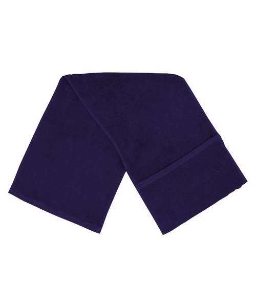 Luxury towelling gym towel with handy pocket, ideal for carrying keys, phones and stuff. Pocket size is 29cm x 17cm. It also has tear-out label, ideal for relabelling.