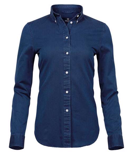 The washed, indigo, Women’s casual twill shirt has a slim and comfortable fit, detailed with a button-down collar and a curved hem. It’s a relaxed choice for the office or a weekend lunch. With its button-down collar and indigo dye, this shirt strikes the perfect balance of rugged and refined.
