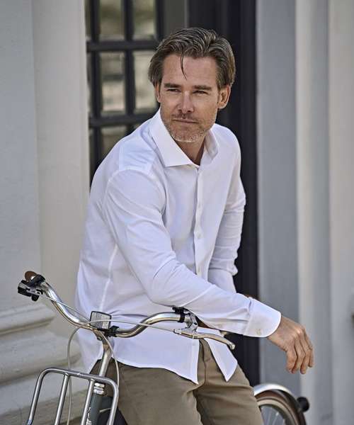 The Active stretch shirt has a shaped fit with luxury four-way stretch for total comfort. The knitted cotton/elastane quality ensures elasticity and softness – and it’s quick-drying, so is easy to wash and care for.