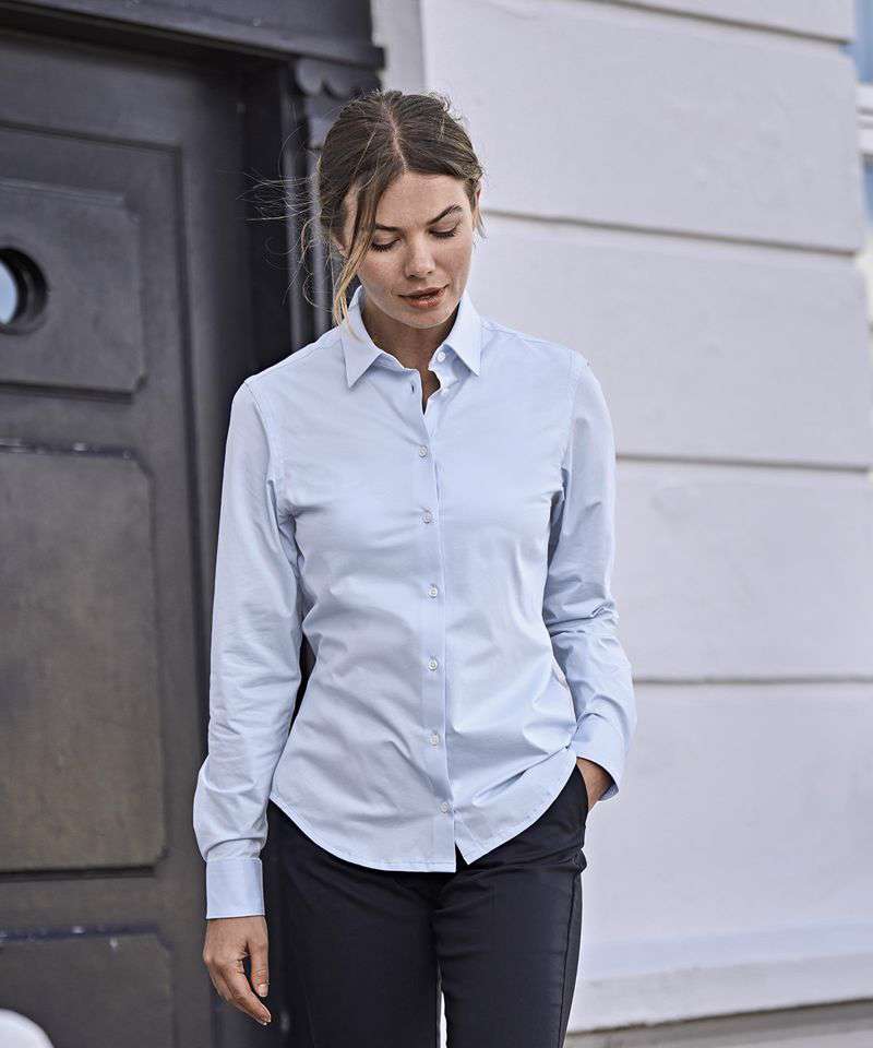 The Women’s active stretch shirt has a shaped fit with luxury four-way stretch for total comfort. The knitted cotton/elastane quality ensures elasticity and softness – and it’s quick-drying, so is easy to wash and care for.