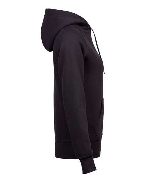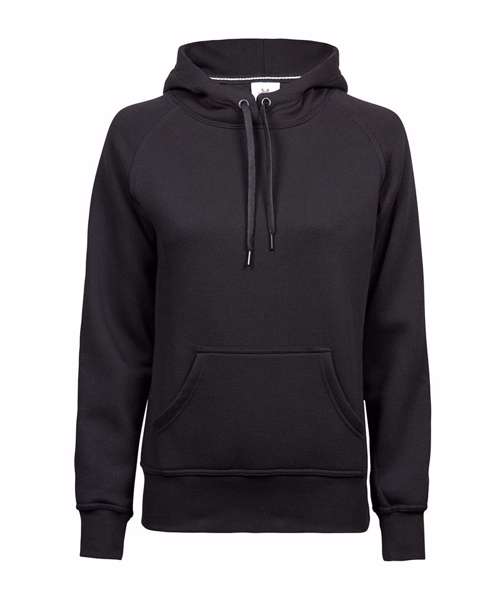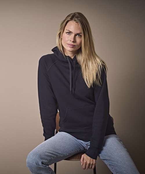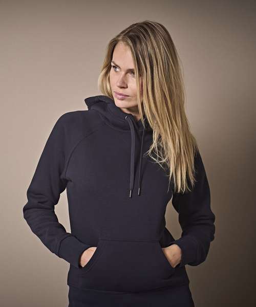 The heavyweight Women’s hooded sweatshirt features a large front pocket and an adjustable hood with double-stitched elastic cuffs and waistband.