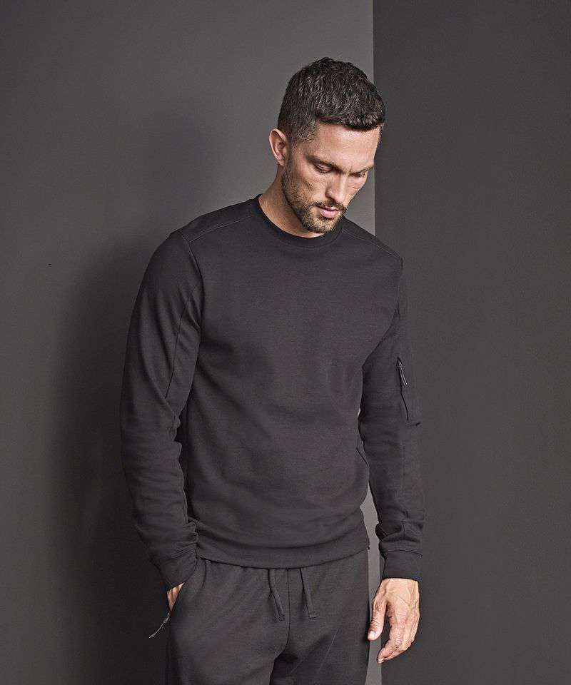 The Athletic crew neck sweatshirt is made from a cotton/polyester blend for softness and durability, featuring a zipped sleeve pocket and a small bottom hem. The functional design complements leisurewear, yet is also suitable for staff clothing, keeping it both stylish and practical.