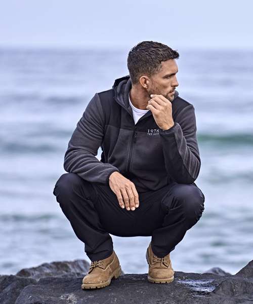 Engineered with a blend of heavy, soft polyester fleece and reinforced ripstop polyester on the shoulders and elbows, the Mountain hooded fleece epitomises cool functionality. Boasting quality SBS zips and two spacious front pockets, it merges style with utility. Elastic banding on the sleeves ensures a snug fit, so you can brave the cold in comfort and with confidence.