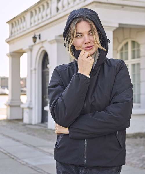 The Women’s urban adventure jacket is crafted in a two-layered performance material with a detachable hood. This premium jacket has water-repellent properties and is insulated with high-quality DuPont™ padding. The dull black trim contrast gives the jacket an urban edge, with functional features perfect for outdoor activities. The jacket has double pocket opening with a discreet zip pull and a flap with black metal snap buttons.It’s designed to provide you with excellent warmth, amazing durability and an urban outdoor look.