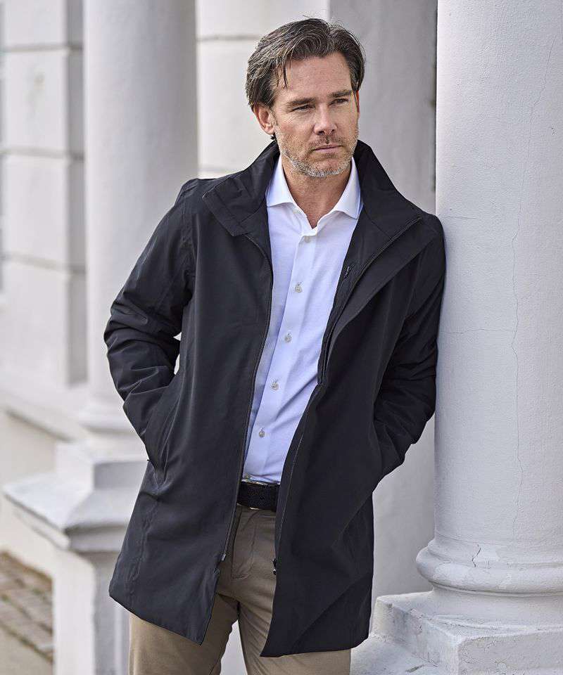 The All-weather parka has a smooth, flawless surface for the modern businessman, crafted in a waterproof, stretch material insulated with premium DuPont™ padding. It has a high collar and large front pockets with warm linings, as well as a hidden closure with magnetic buttons and a practical two-way front zip. The obvious first choice for your urban business ventures.