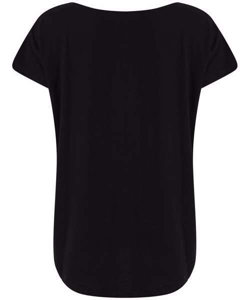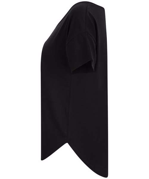 Women's scoop neck T with oversized fit and scoop neck. Dropped shoulder seams and dropped tail hem on back. Super soft fabric. Tear-out label.
