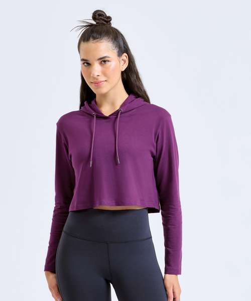 The perfect throw-over, whether you are just getting going or winding down. The women's TriDri® cropped hooded t-shirt has a boxy, cropped fit, it’s the pull-over you’ll always want in your gym bag.