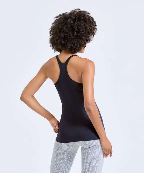 Seamless vest. Contrast detailing. Body sculpting design detailing. Racerback. Hidden sports bra inner with removable bra pads for additional support. Ribbed stretch fabric. Medium impact. We recommend using block out vinyl and inks.Product contains no branded neck or waist label. Removable Kimble or looped garment tags. Inner seam label holds important product information on one label with a second label containing brand information which can be cut-away.
