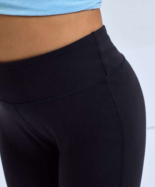 Soft stretch fabric. Recycled polyester. Elasticated self-fabric waistband. We recommend using block out vinyl and inks.Product contains no branded neck or waist label. Removable Kimble or looped garment tags. Inner seam label holds important product information on one label with a second label containing brand information which can be cut-away. UPF 40+.