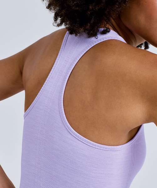 Seamless vest. Body contour detailing. Wicking fabric. Ribbed detailing to side of vest. Racerback design. We recommend using block out vinyl and inks.Product contains no branded neck or waist label. Removable Kimble or looped garment tags. Inner seam label holds important product information on one label with a second label containing brand information which can be cut-away.