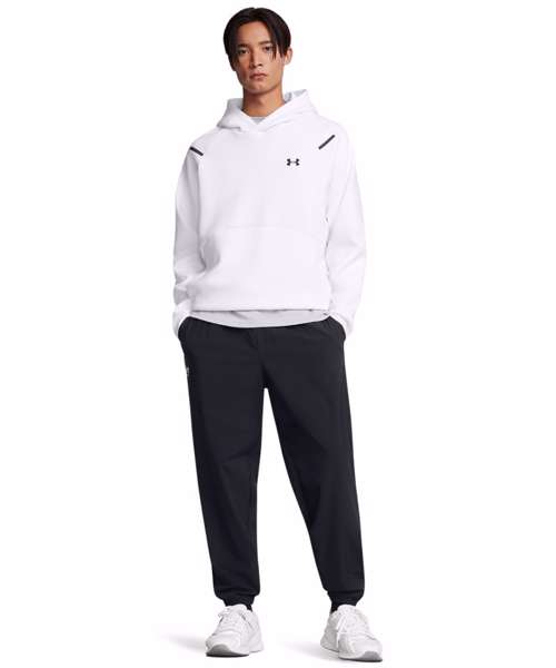 UA Storm technology repels water without sacrificing breathability. Lightweight stretch woven fabric delivers superior comfort and durability. 4-way stretch material moves in all directions. Encased elastic waistband with external drawcord. Open hand pockets and secure, snap-closure back pocket. Encased elastic cuffs. Uses a fluorine-free, water-repellent treatment. Main body fabric contains at least 80% recycled polyester, excluding trims and embellishments.