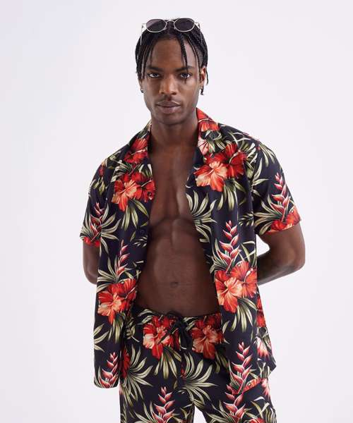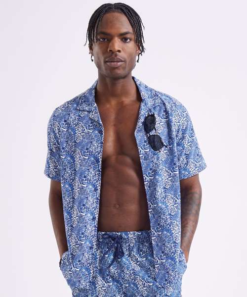 Looking to add some fun to your summer wardrobe? Look no further than Wombat's short-sleeve shirt. Perfect for vacations or just lounging in the sun, this shirt features a relaxed fit, lightweight material, a trendy Cuban collar, and easy button fastening. Wear it on its own for a breezy look, or layer it up with a classic tank top and matching Wombat swim shorts for a vibrant and coordinated outfit.