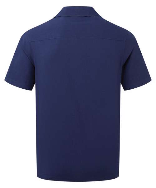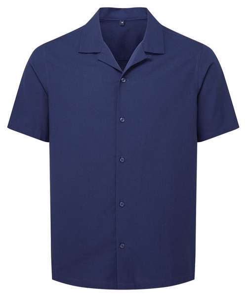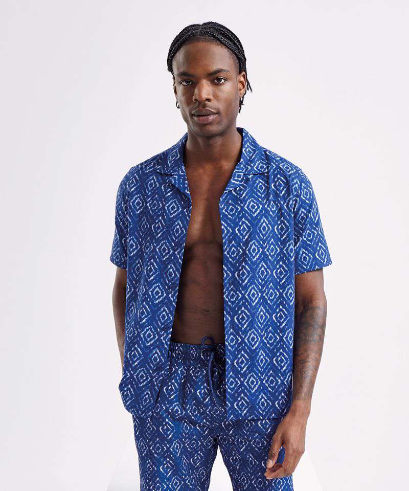Relaxed fit shirt. Cuban collar. Button front closure. Short sleeves.