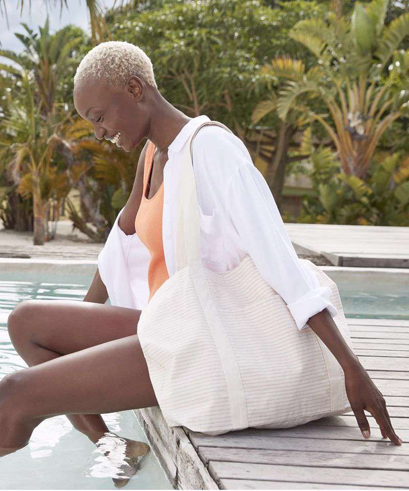 From high street shops to your local farmers’ market, this striped shopper is a must for any modern multitasker – the perfect way to elevate soft, minimal styling with a subtle pop of colour. Sized to store all of your on-the-go essentials and shopping items, it has comfortable handles that can be carried by hand or worn over the shoulder. Made from 100% certified organic cotton, this is another welcome step towards a more sustainable future and more conscious style choices.