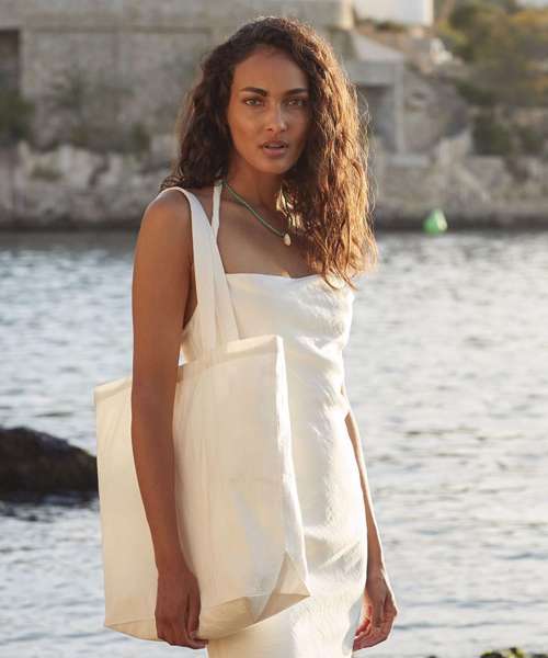 100% Organic cotton, 140gsm (4.1oz/yd²). Coloured with sustainably-derived natural dyes. Subtle variations in colour due to natural dyeing process. Large capacity. Fades beautifully over time. Can be carried by hand or over the shoulder. TearAway label for easy rebranding.