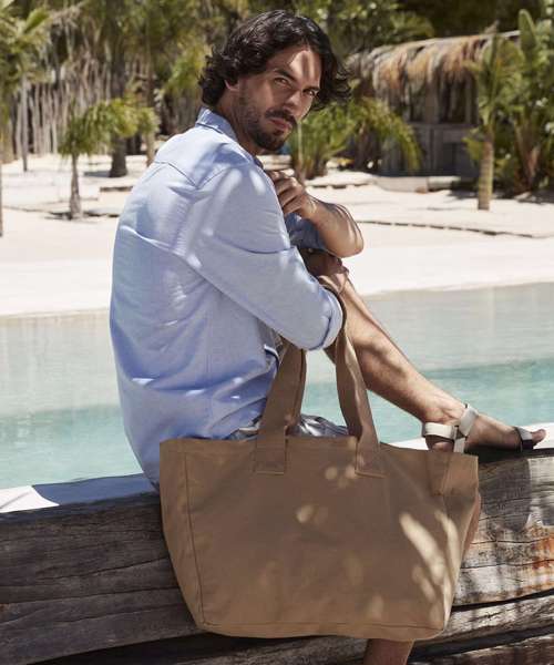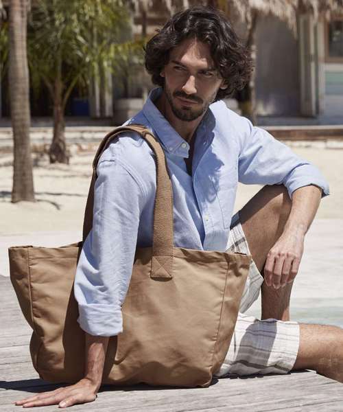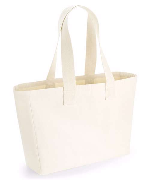 100% Cotton canvas (10oz/yd²). Oversized style. Soft webbing handles for maximum comfort. Can be carried by hand or over the shoulder. TearAway label for easy rebranding.