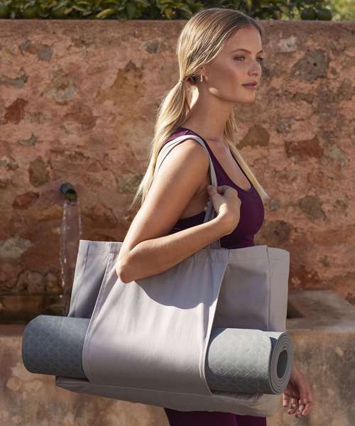 Contains 100% certified organic cotton. Premium, heavyweight fabric. External sleeve for easy-access yoga mat storage. Can be carried by hand or over the shoulder. Fits most yoga mat sizes. *Yoga mat not included.