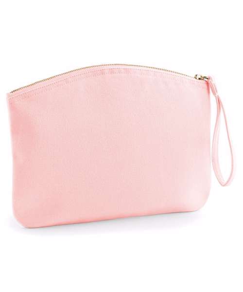 Premium heavyweight fabric. Zippered closure. Wristlet strap. Multi-purpose use. Available in two sizes - Small and Large. Handle length - 15cm. 100% Certified organic cotton.