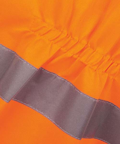Conforms to ENISO20471 Class 2 and RIS-3279-TOM for railway use and EN510 for anti-entanglement. One 5cm width reflective tape around the body and one over each shoulder. "II" shape reflective tape in the front and at the part elasticated rear. Hook and loop fastening in the front and on the shoulder and at sides for quick-release in case of emergency.