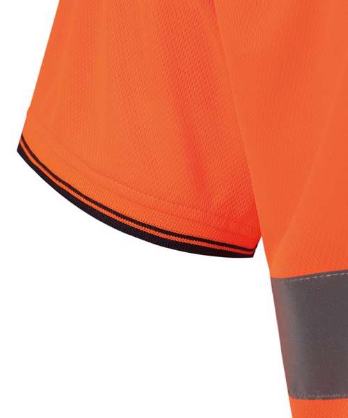 Conform to ENISO 20471 Class 2 and Orange/Navy is also RIS-3279-TOM Railway use certified. Two extra wide retro-reflective tapes around body. Made of Aircool breathable and quick-dry soft and skin-friendly Birdseye fabric. Great flexibility and stretch with brilliant shape retention. Nice navy contrast on the shoulders, collar, cuffs and hem. Three button placket. Side vents with reinforced stitches. Tag free.