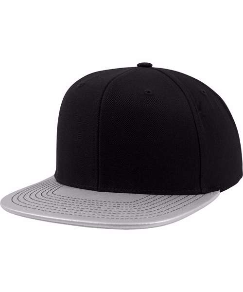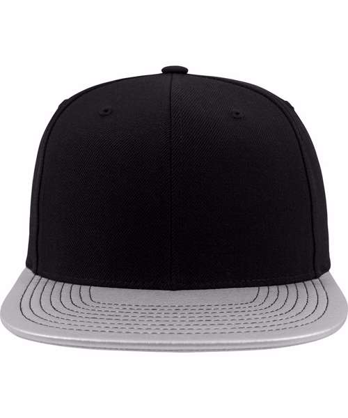 Classic shape. Premium wool blend. Matching plastic snap. Hard buckram. Metallic look visor.