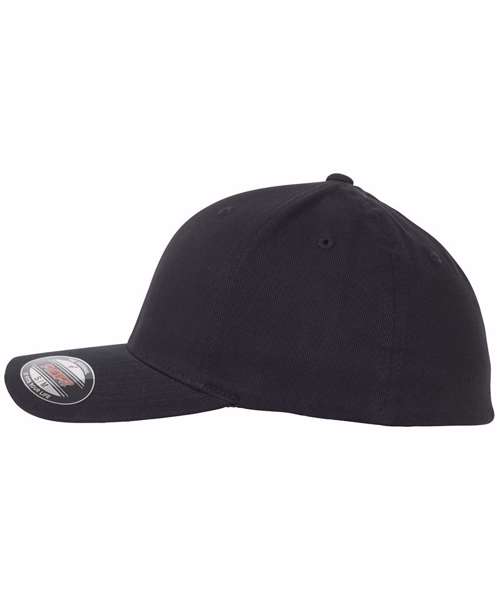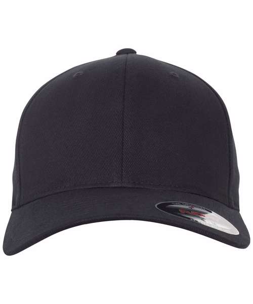 Sporty Flexfit shape. Brushed twill. wool-blend. Silver undervisor. Eight rows of seams on the top of the visor.