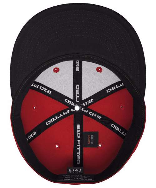 2-tone cap. Pro-baseball on-field shape. Fitted cap with Flexfit technology. Contrast visor and top button. Matching undervisor. Hard buckram.