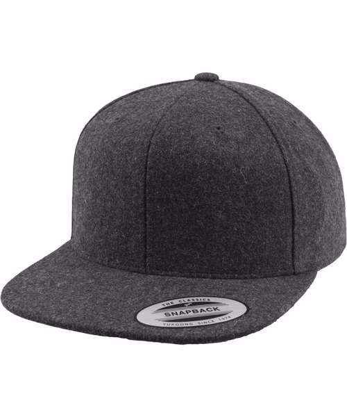 Melton wool snapback. Classic shape. Premium wool-blend. Matching plastic snap. Hard buckram. Classic green undervisor.