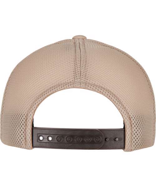 This Flexfit cap has a dense, ripstop material on the two front panels and a curved visor with decorative seams. The back is made from transparent mesh, and the snapback closure makes individual size adjustment easy. Made from cotton, spandex and polyester mesh in one size.
